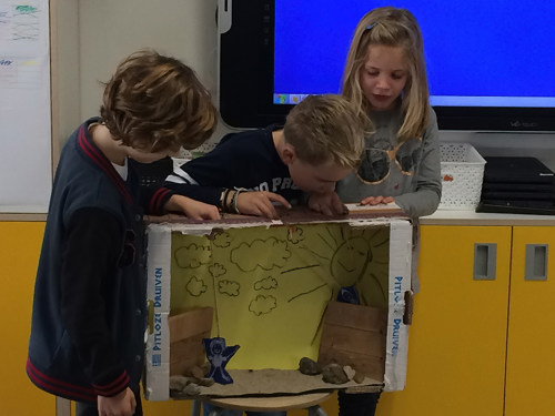 Bij ons op school worden de zaakvakken samen in themaprojecten aangeboden. Dit geldt voor de vakken geschiedenis, aardrijkskunde, natuur en techniek. Per thema worden diverse leervragen/leerdoelen opgesteld en wordt er gebrainstormd met de kinderen wat ze graag nog meer zouden willen weten. Door middel van allerlei opdrachten met verschillende werkvormen kiezen de kinderen een werkvorm die bij ze past. Ze voeren opdrachten uit om antwoord te krijgen op de diverse leervragen. In elk thema wordt er vanuit diverse invalshoeken, dus meerdere vakken, naar het onderwerp gekeken. Tijdens de thema’s zijn de kinderen heel actief en zelfstandig bezig met het thema van dat moment. Ze onderzoeken, zijn nieuwsgierig en taakgericht bezig. We zien dat het de betrokkenheid en het plezier in leren vergroot. Hierdoor zal de leerstof veel makkelijker onthouden worden. Tijdens evaluatiemomenten wordt er besproken hoe het gaat en wat de kinderen geleerd hebben. Aan het eind van een thema presenteren ze aan elkaar wat ze hebben onderzocht en hebben geleerd. Dit is niet alleen in de klas, maar ook schoolbreed waarbij ouders komen kijken naar een tentoonstelling, markt of uitvoering. Kortom, een heel waardevolle en leerzame manier van werken.